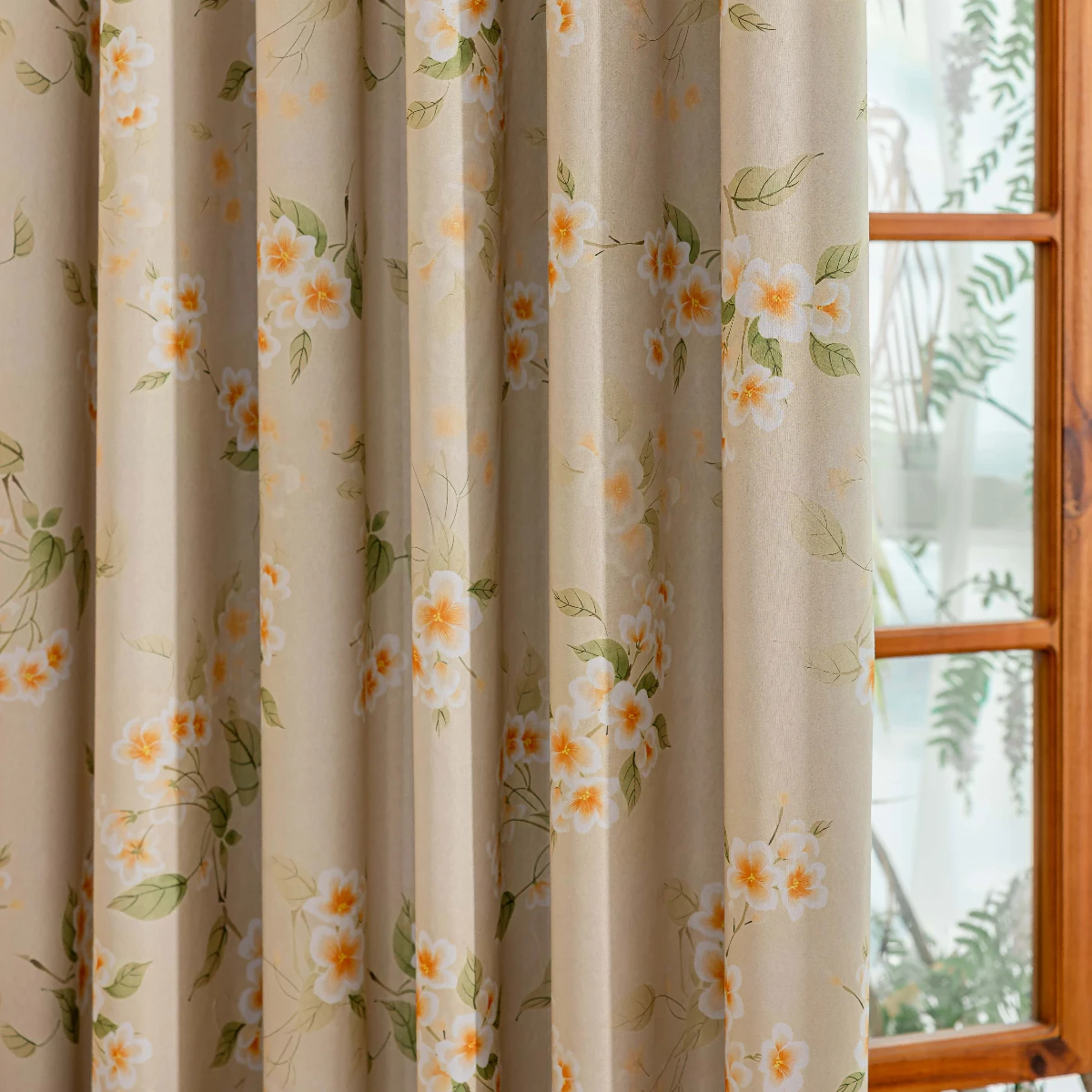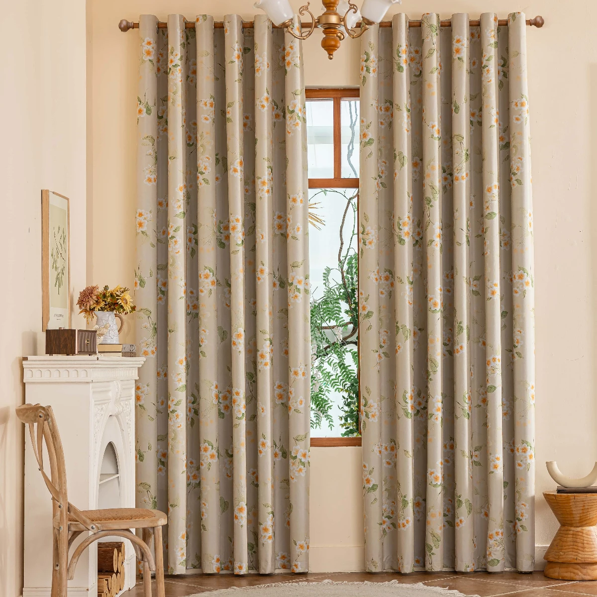 1 Piece of New Laminated Beige Background Curtain with Small Floral Print, 100% Blackout Fabric for Home Use, Blackout and Heat-Insulating Thickened Curtain, Decorative Rod-Pole Curtains for Living Room, Bedroom, and Study
